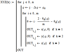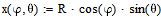 Равенка на средната површина на браната во Декартови координати, во функција од сферните координати